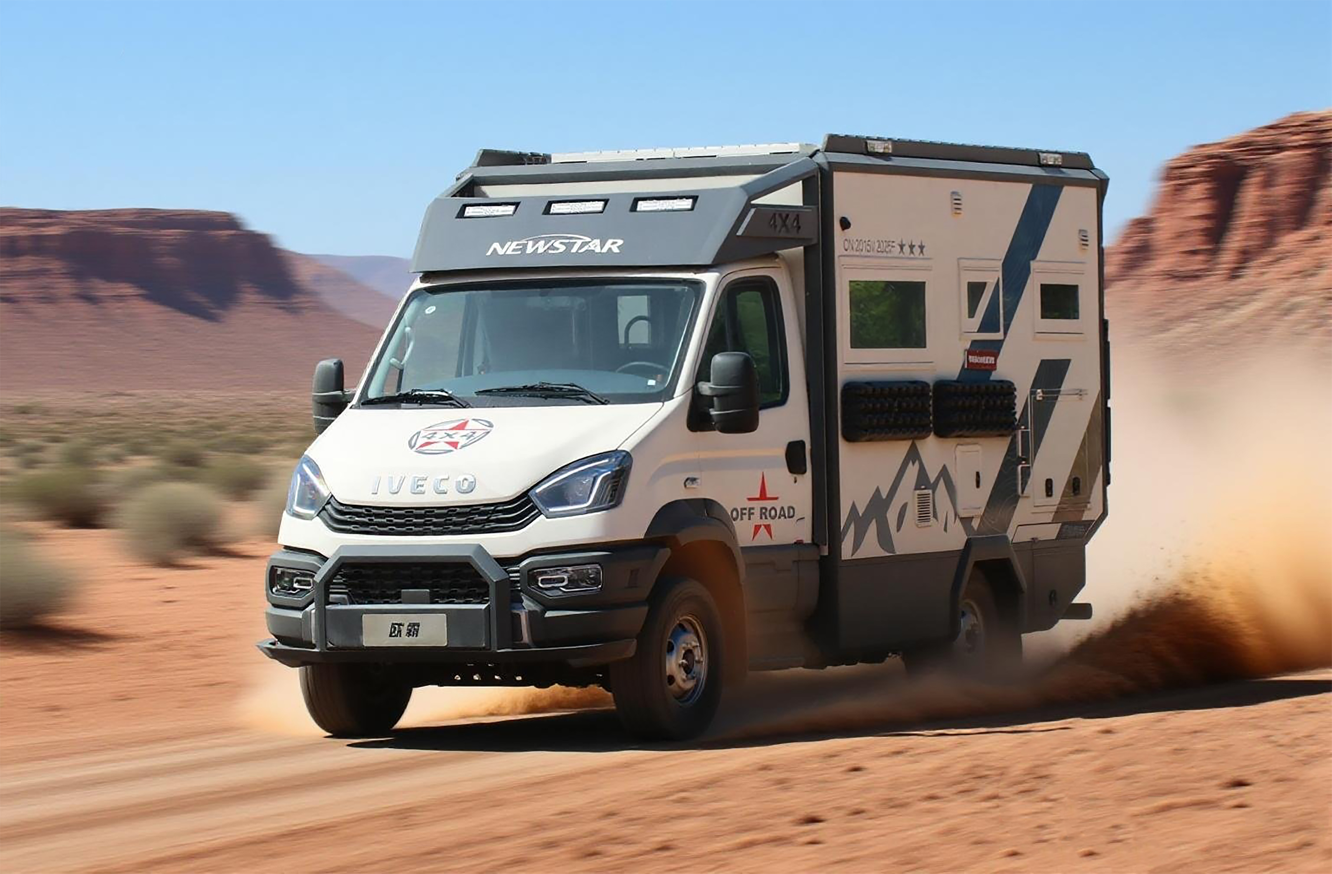 房車屆的五好學生水電好:300L清水箱,1700W太陽能板,15度電鯉電池空間好:六米之內(nèi)空間最大動力好: 5.2L柴油發(fā)動機,6AT變速箱承載力好:十噸級承載力結(jié)構(gòu)安全好:全鋁骨架+2mm厚航空鋁板車身工藝